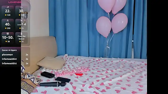 Her show often includes fuck machine. She also does dirty-talk.